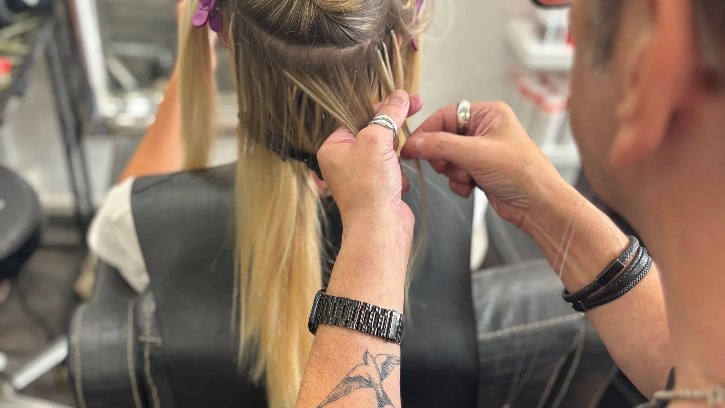 Precision Cutting: We do not just leave you with long hair; we cut and style your extensions so they flow effortlessly with your natural layers.